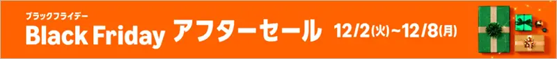 11月24日(月)~12月1日(月)までの期間、ブラックフライデーセール開催していましたが、現在、アフターセールを開催しています。