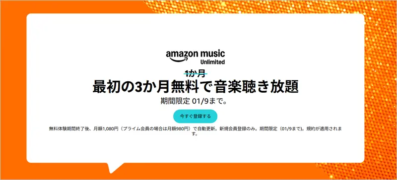 Amazon Music Unlimited 3か月無料で音楽聴き放題