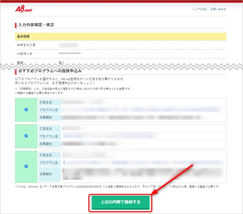 入力内容に誤りがなければ「上記の内容で登録する」をクリックします。