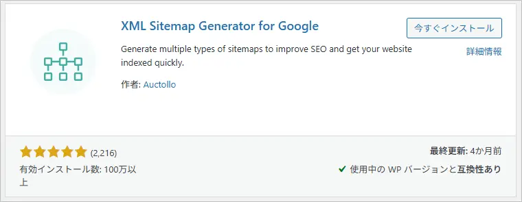 XML Sitemap Generator for Googleは、検索エンジンのクローラーがページの情報を読み込むためのXMLサイトマップを自動生成するプラグインです。
