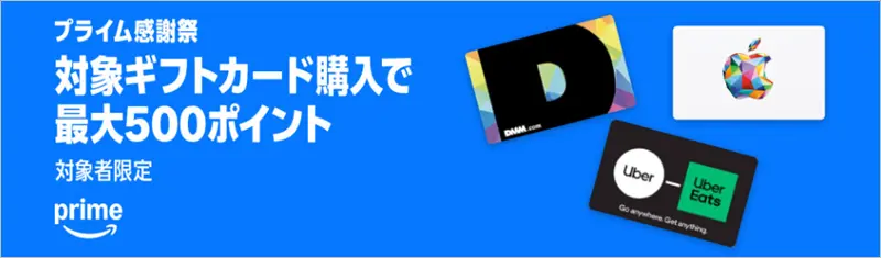 公式サイト Amazon ギフトカード プライム感謝祭キャンペーン(10/10まで)