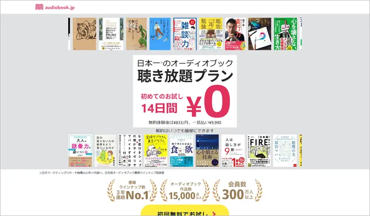 上記プランは無料お試しがありませんが、聴き放題プランは14日間の無料体験期間があります。
