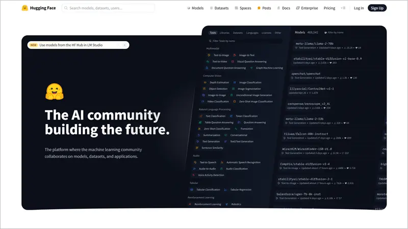 Hugging Faceは、AIや機械学習のためのオープンソースプラットフォームで、AIモデルや学習に使うデータセットを利用・共有できるサービスです。特に自然言語処理(NLP)や画像認識などの分野で使われ、多くの事前学習済みモデルが提供されています。