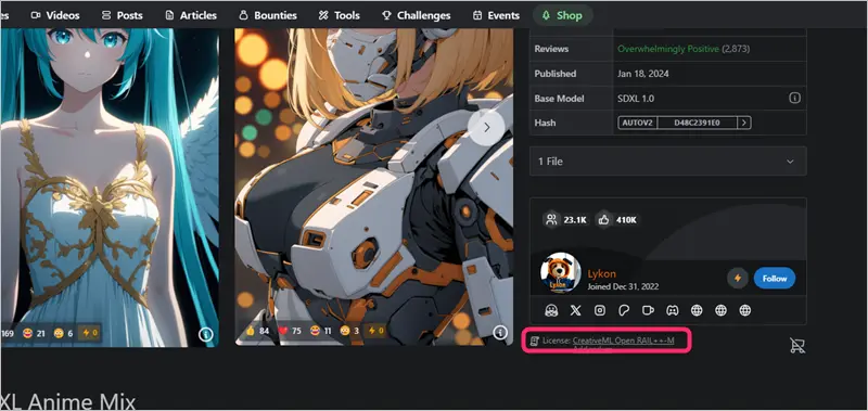 最後に、商用利用できるCheckpointのライセンス確認方法を解説していきます。