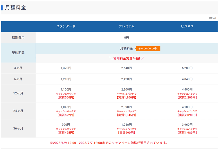 - 初期費用:0円