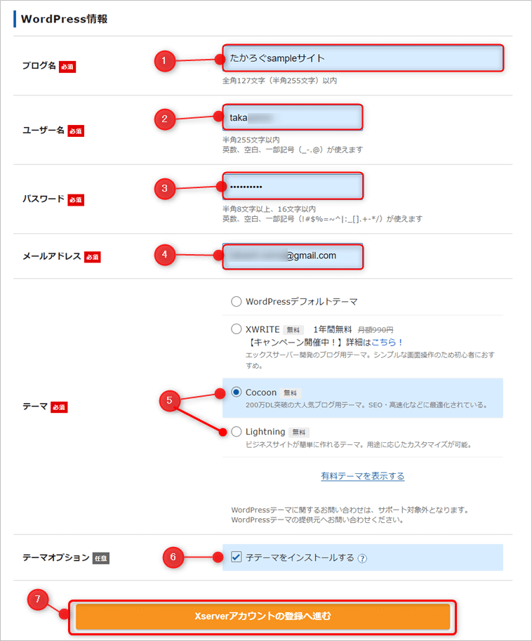 - 手順③:WordPressサイトのインストール情報入力