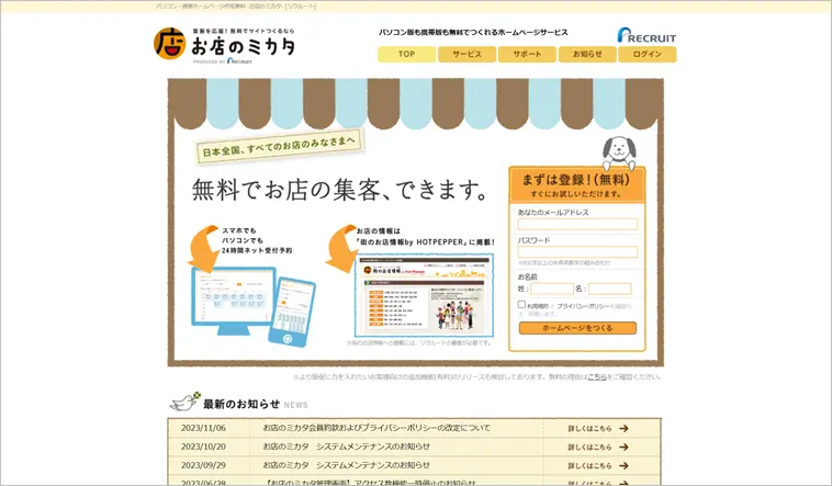 お店のミカタは、お店に限らず、ビジネス全般無料で登録できるサービスです。