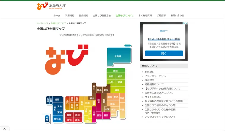 なびシリーズは、47都道府県別に地域情報ポータルサイトが用意された、幅広い業種のビジネスが無料で登録できるサービスです。