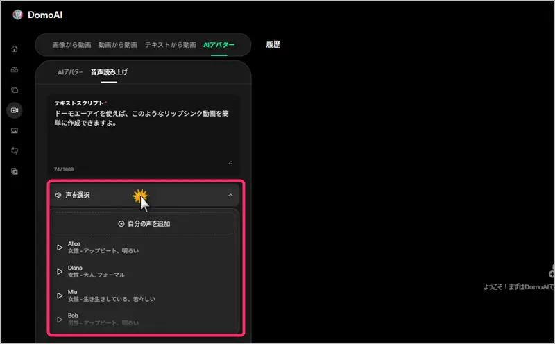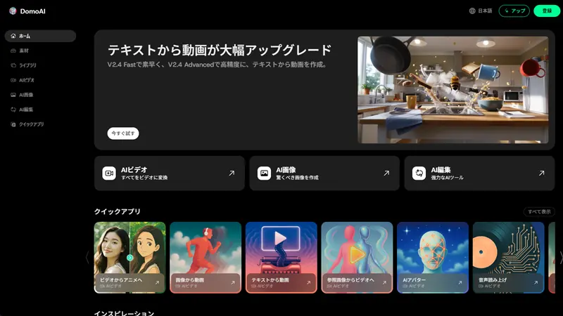 DomoAIは、テキストや画像を入力するだけでアニメーションを生成できる、初心者にも扱いやすいAIツールです。