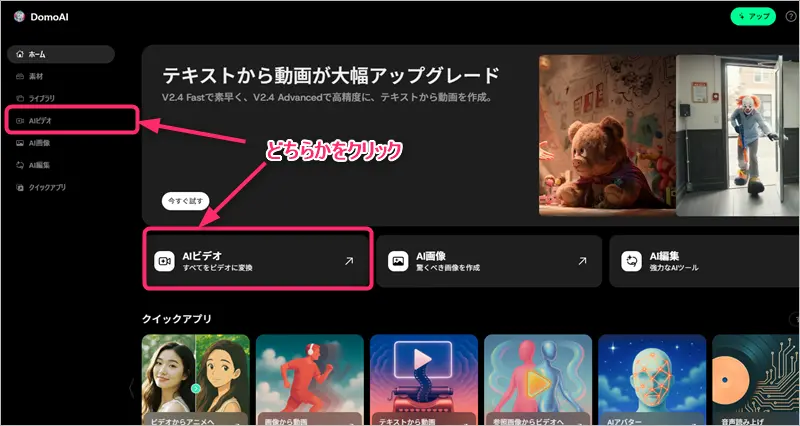 - AIビデオ:画像やテキストから動画を生成する中核機能