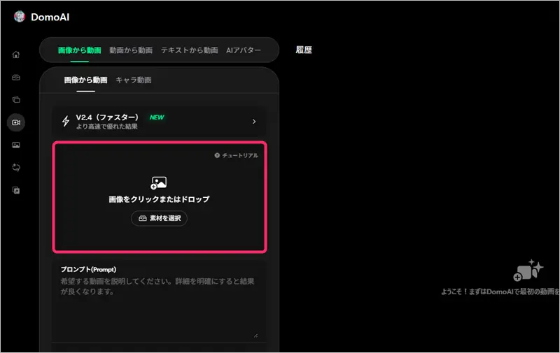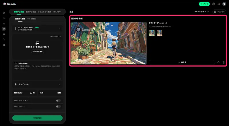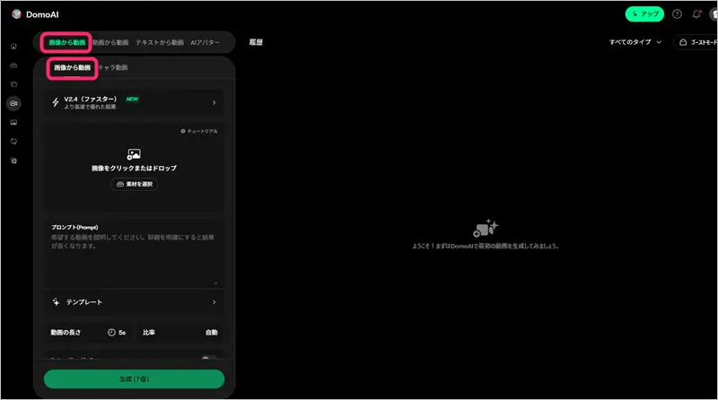 DomoAIには「画像から動画」や「AIアバター」以外にも便利な機能が用意されています。ここでは動画から動画への変換やテキストから画像生成などの機能を紹介します。