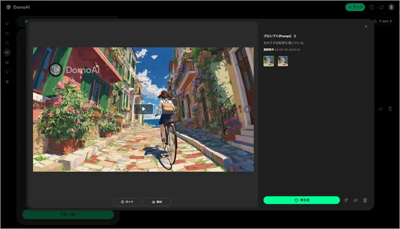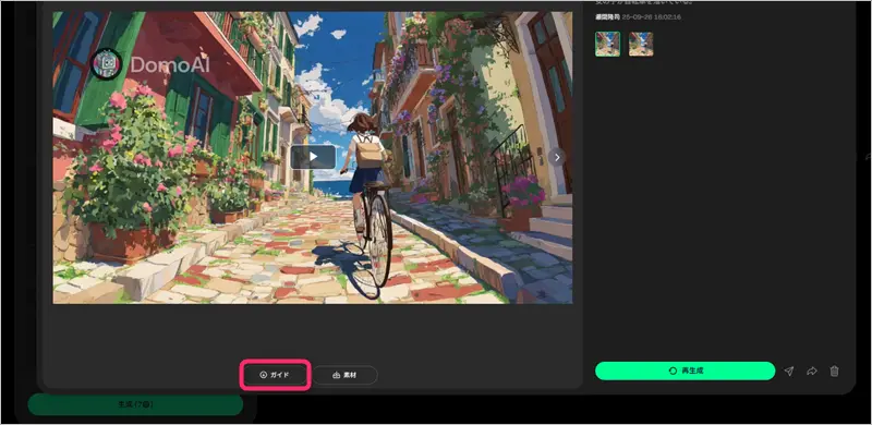 生成した動画は、動画の下にある「ガイド」をクリックするとダウンロードできます。
