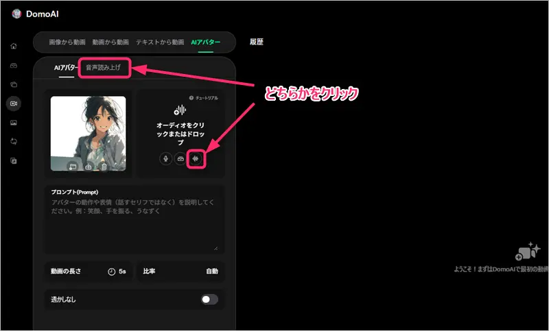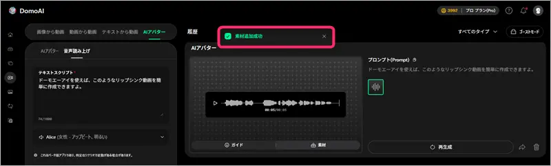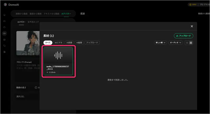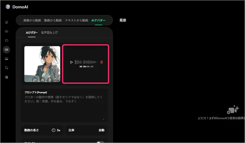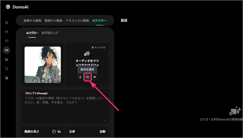 素材を追加することで、DomoAI上で画像と音声をミックスできるようになります。