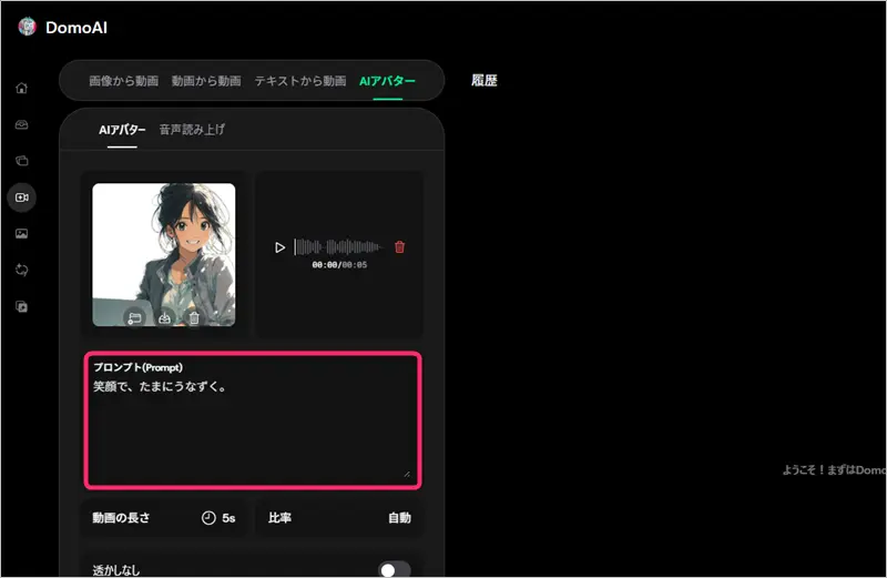 アバターの動きや表情などを指定するプロンプトを入力します。