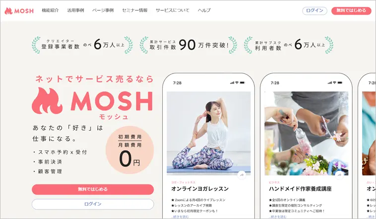 :テンプレートを選んで編集するだけで作れる - MOSH:スマホ1つで予約受付・販売可能なページが作れる