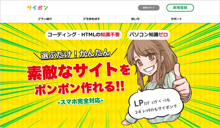 - サイポン:チラシのようなランディングページが作れる