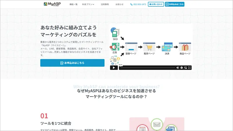 MyASP(マイスピー) | 無料 (マッハプランのみ有料) | 3,300円~ | LINE、SMS、infotop、API連携 | ||