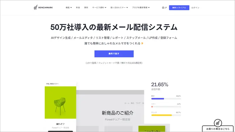 Benchmark Email:シンプル操作でデザイン性の高いメールを作成