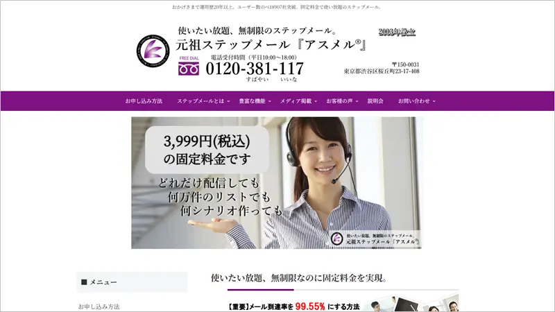アスメルは、株式会社レジェンドが2005年頃からサービス提供している老舗のメール配信システムです。