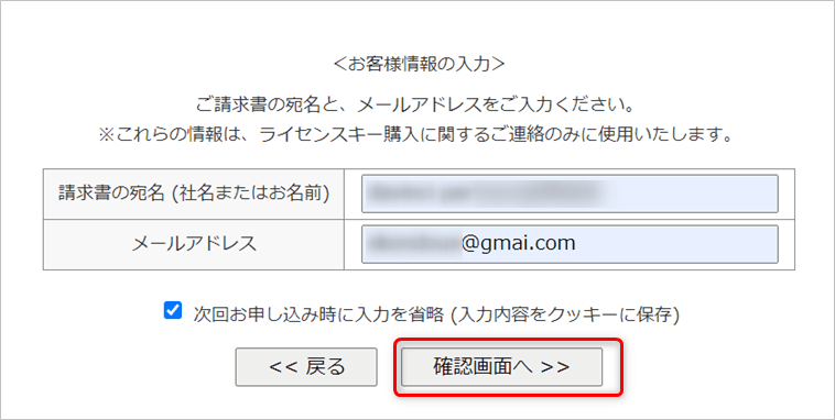 入力した内容に間違いが無ければ、「ライセンス購入を申し込む」ボタンをクリックします。