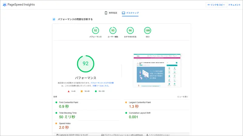90以上が合格点なので、パソコンの表示速度は文句なしの数値だと思います。