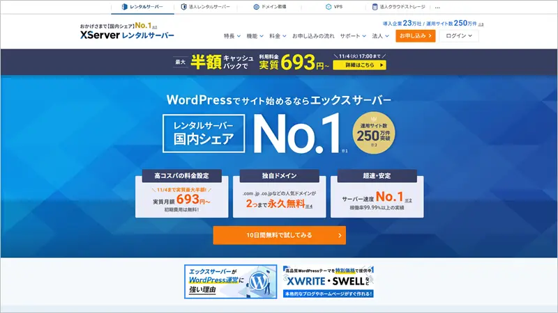 安定性と信頼性を重視している方は、エックスサーバーがおすすめです。